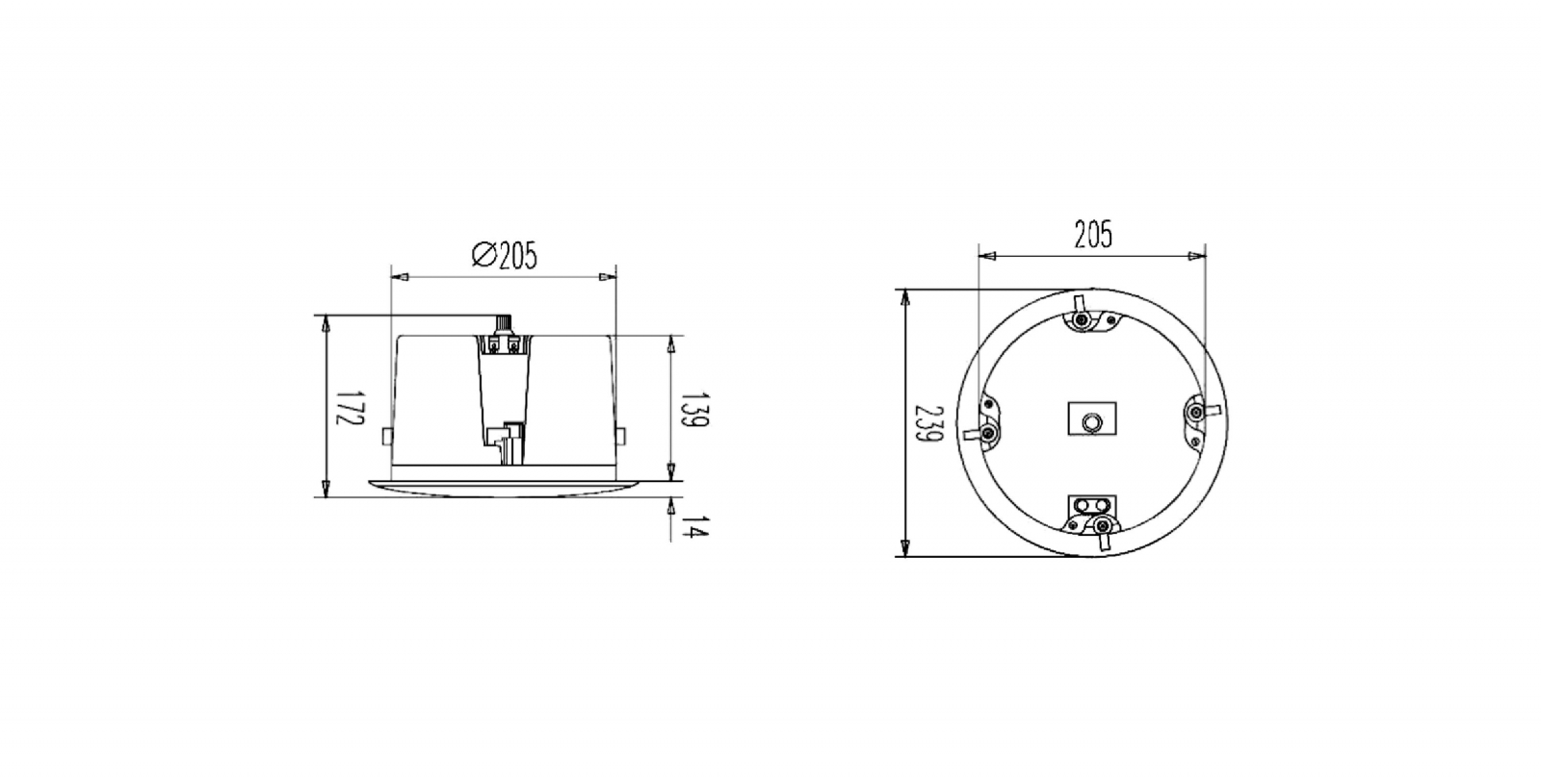 C600T is two way,direct inverting ,high-performance ceiling speaker. The compound edge of the bass unit and the dome tweeter coaxial design, featuring elastic bass, transparent and bright mid-high frequency.Simple and generous appearance design makes the speaker visual completely into the ceiling decoration.Suitable for meeting meeting rooms, retail stores, restaurants, hotels and other places to play background music and language reinforcement. The series products comply with numerous escape system safety annotations worldwide.