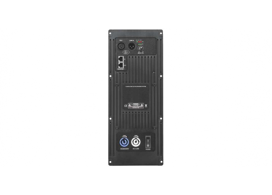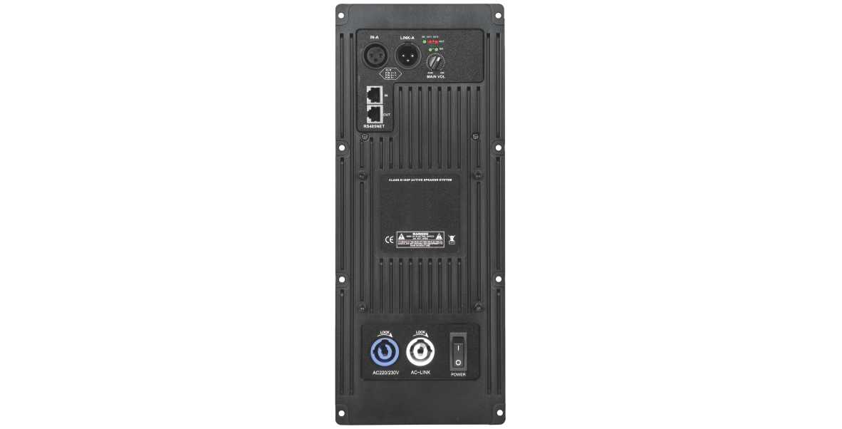 The FA series of active amplifier module, designed for full range active speakers, using Class D circuit, modularized design, independent PWM fixed frequency modulation, to reduce the difference frequency of the self-excited circuit and multichannel interference. Built-in two channel 24 bit / 96 k sampling frequency of the high performance DSP processor, RS485 connector or network adjustment, input 31 section PEQ, output 10 section PEQ, input/output delay 0 to 25 ms is adjustable, and bringing the independent band-pass filter, all-pass filter, independent pressure limit, the noise control. The product has large power and low distortion, and the whole shielding sealing box makes the product meet the requirements of EMC and product safety level.