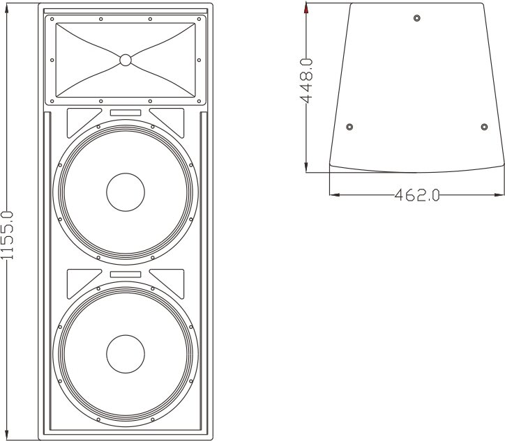 The FT215Ⅱis a dual 15" two-way full range speaker. Unit configuration: 2x15" high efficiency mid-bass unit, 1x1" exit throat 44mm polyester diaphragm HF driver with special designed horn. The cabinet is made of MDF with water-based environmental protection paint.