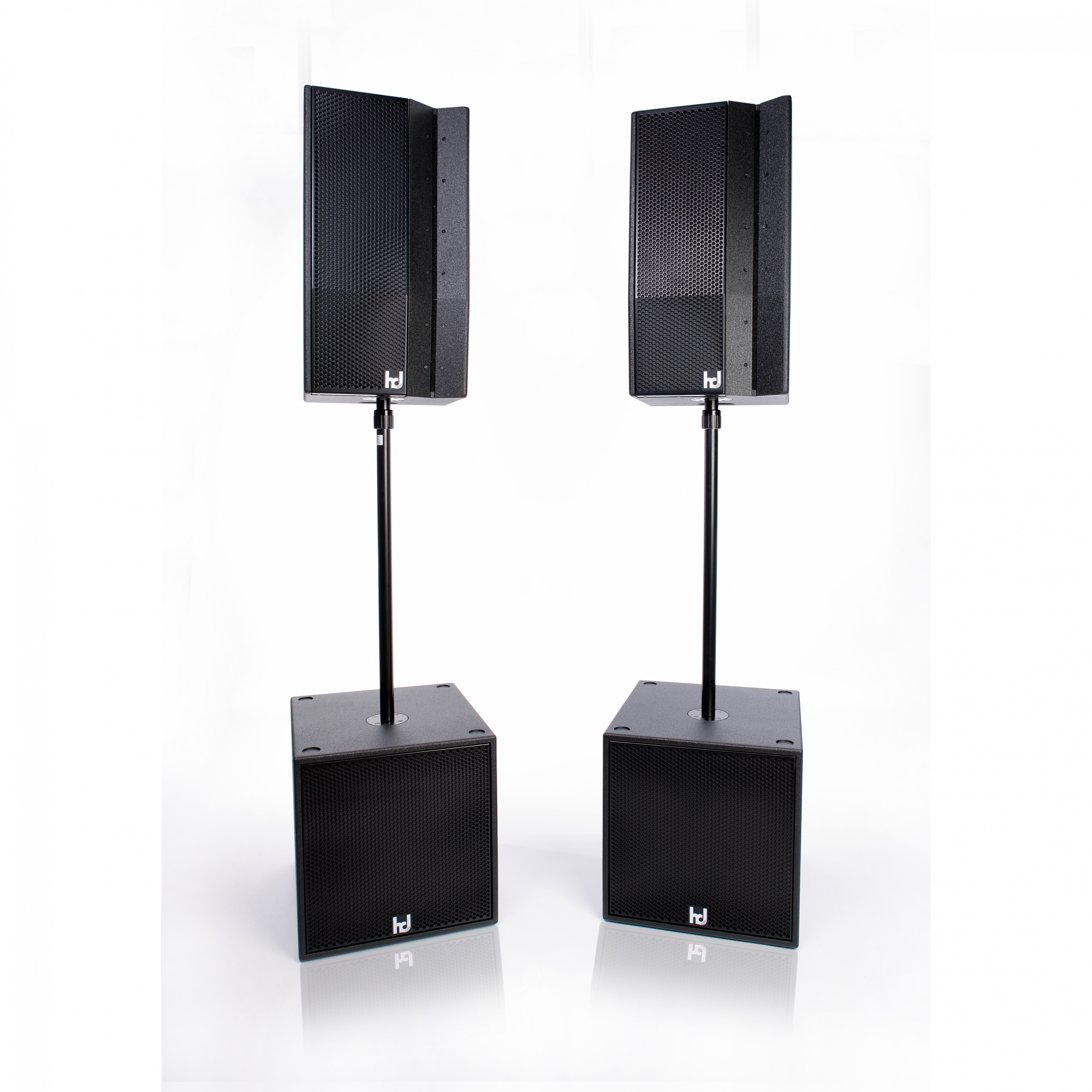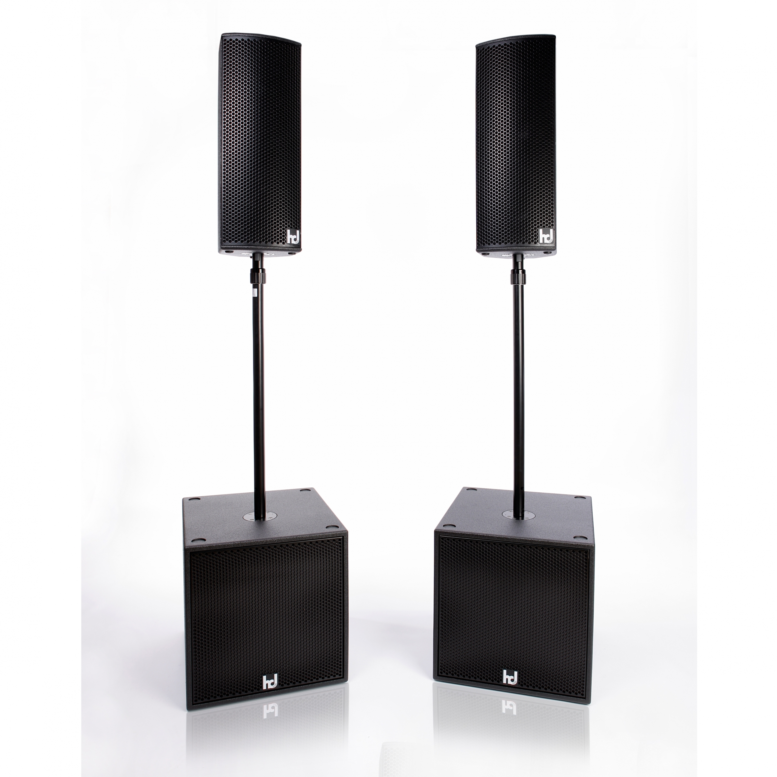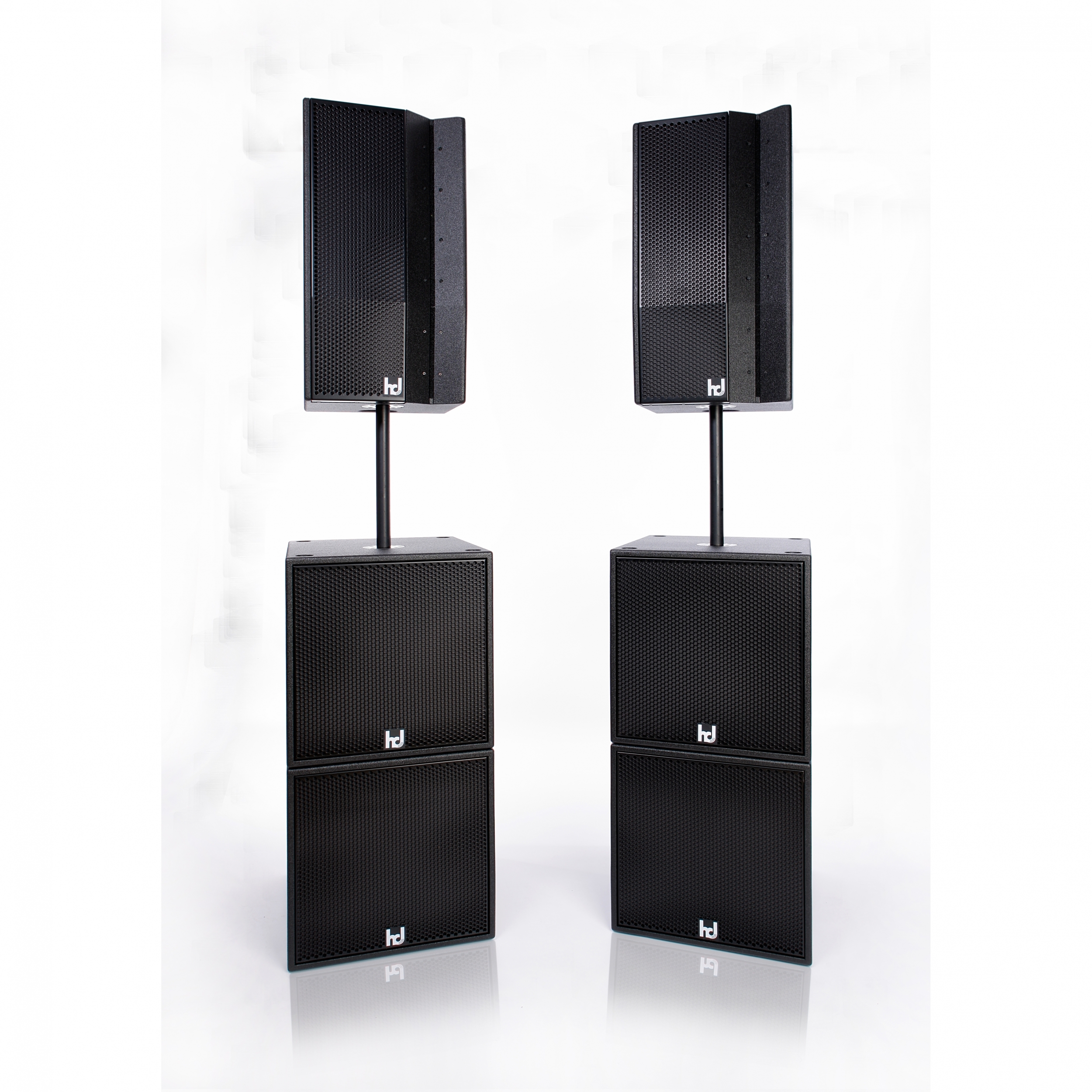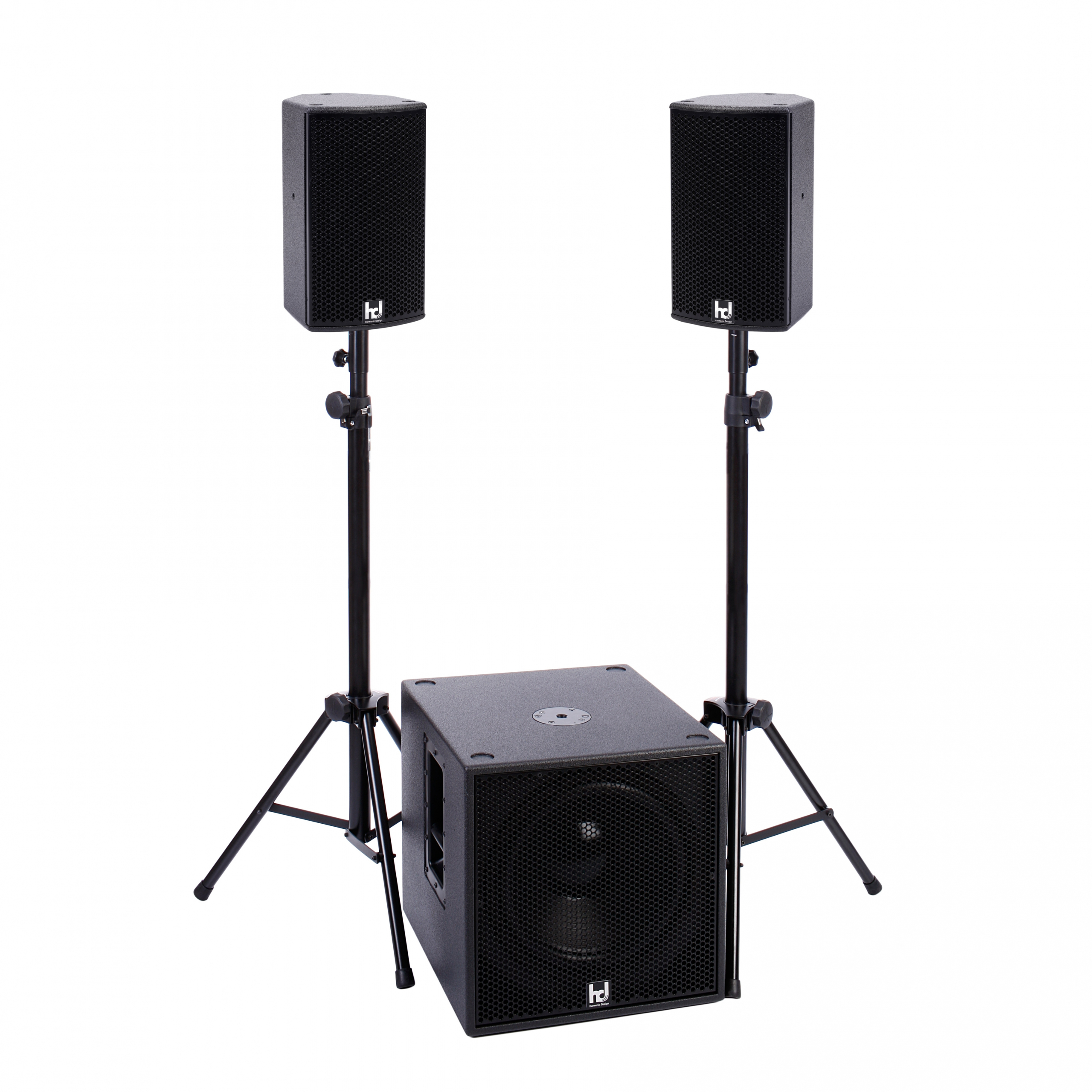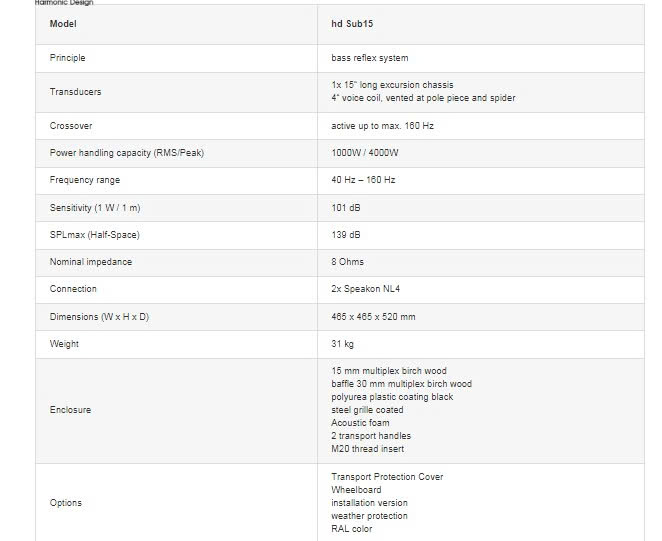 The hd Sub15 is a compact, easy to carry and powerful subwoofer in bass reflex tuning. The specially developed 15″ long excursion chassis with 4″ voice coil on fiberglass carrier allows a excursion of ±15 mm. Through a ventilation at the pole piece and at the spider the heat development of the coil is optimally dissipated. Therefore, an extremely high continuous power handling capacity of 1000 W / 4000 W is possible. The lower heat development also means increased reliability and reduced thermal stress on the voice coil. Excellent dynamics and dry bass reproduction at incredible pressure is the result. The filtering is done by Harmonic Design DSP amplifiers. With active crossover of 24 dB/octave up to max. 160 Hz, best possible transitions between LF and HF are achieved.The housing made of multiplex wood is coated with a polyurea plastic coating scratch, impact and weather resistant and equipped with two transport handles. The front of the loudspeaker is protected by a rustproof, coated steel grille with internally glued acoustic foam. In addition, four abrasion-resistant rubber feet on the underside and the associated cutouts on top provide for a secure stacking of the same enclosure. On the back there is a recessed connection field with two SpeakCON NL4 sockets for connection via pin 2+/2- and forwarding of the input signal. An M20 threaded insert on the top allows the mounting of a distance rod.Operation is as a slave subwoofer on the active hd P15 system subwoofer or on all Harmonic Design system amplifiers to ensure reliable and accurate low-frequency reproduction. The loudspeaker enclosure is available on request in RAL colors, weatherproof or as an installation version without handles and without M20 thread.