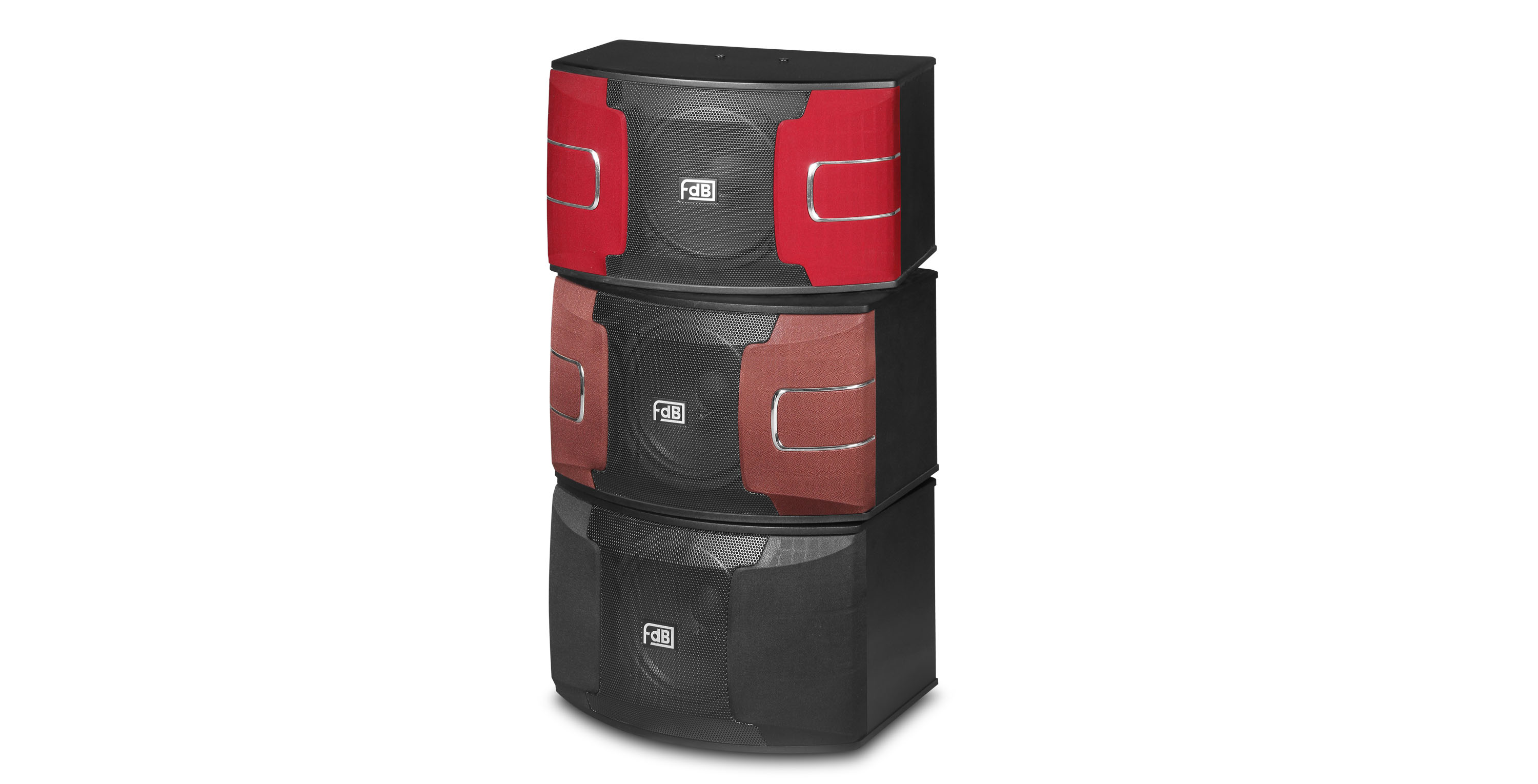 The KW-510 is three way full range speaker with 5 units, which retains the characteristics of the traditional KTV speakers, such as full elasticity of bass, clear and bright mid-high frequency. Unit configuration: 1x10" mid-bass with foaming edge, 2x4" cone mid, 2x3" cone tweeter. The cabinet is made of MDF with wear-resistant PVC.