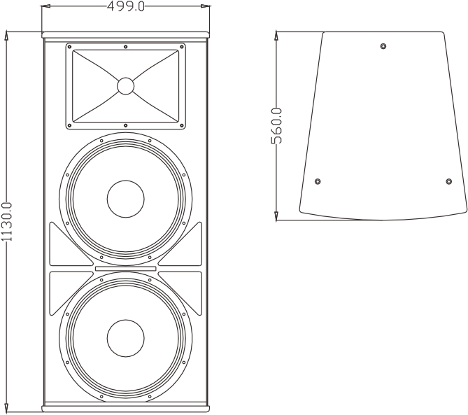 The LH215Ⅱ is a dual 15", light weight, high SPL, two way full range speaker with bright and powerful sound. Unit configuration: 2x15" high power neodymium mid-bass unit, 1x2" exit throat 75mm neodymium titanium diaphragm HF driver with special designed horn. The cabinet is made of multilayer composite plywood with wear-resistant polyurea paint.