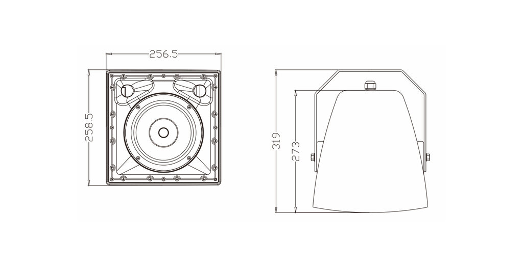 LT206 is a 6.5",coaxial, two-way, all-weather speaker, with waterproof, dustproof, windproof, anti-uv aging, specially designed dustproof and waterproof cover for input and output, has a pressing device, multi-layer different functional grille. The cabinet meets the IP56 standard. The exposed metal parts are made of stainless steel or aluminum, and the mounting bracket is sprayed with low-carbon steel, which can meet all-weather use (the version suitable for the marine environment can be customized, and the mounting bracket is upgraded to 316 stainless steel). Unit configuration: 1x6.5" ferrite mid-bass and 1x 0.8" exit throat 25mm HF driver coaxial unit, the cabinet is made of polymer compound injection molding. LT206T is equipped with transformer and band switch based on LT206 to achieve a variety of different output powers including constant resistance.