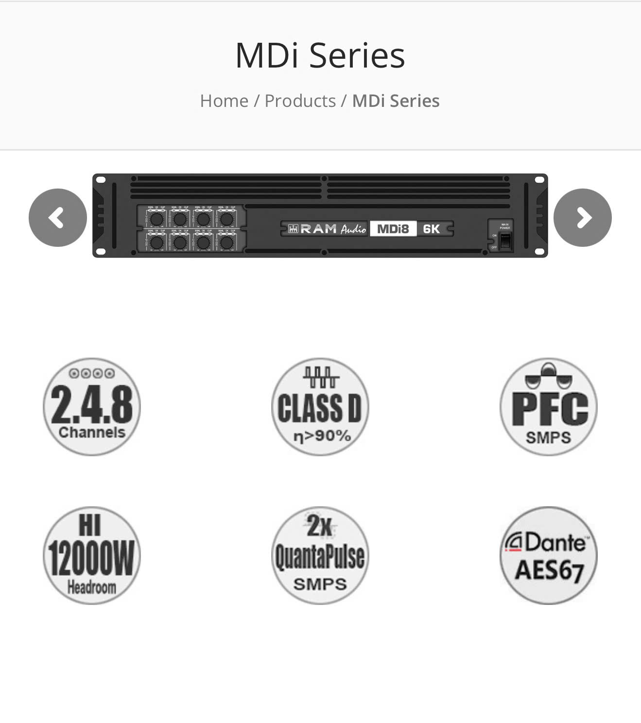 MDi Series is a solution from RAM Audio for fixed installations, where state-of-the-art amplification technology is used to manage acoustic systems in the most efficient and greenest way possible, without diminishing quality of sound and dynamics that have always typified RAM Audio amplifiers.