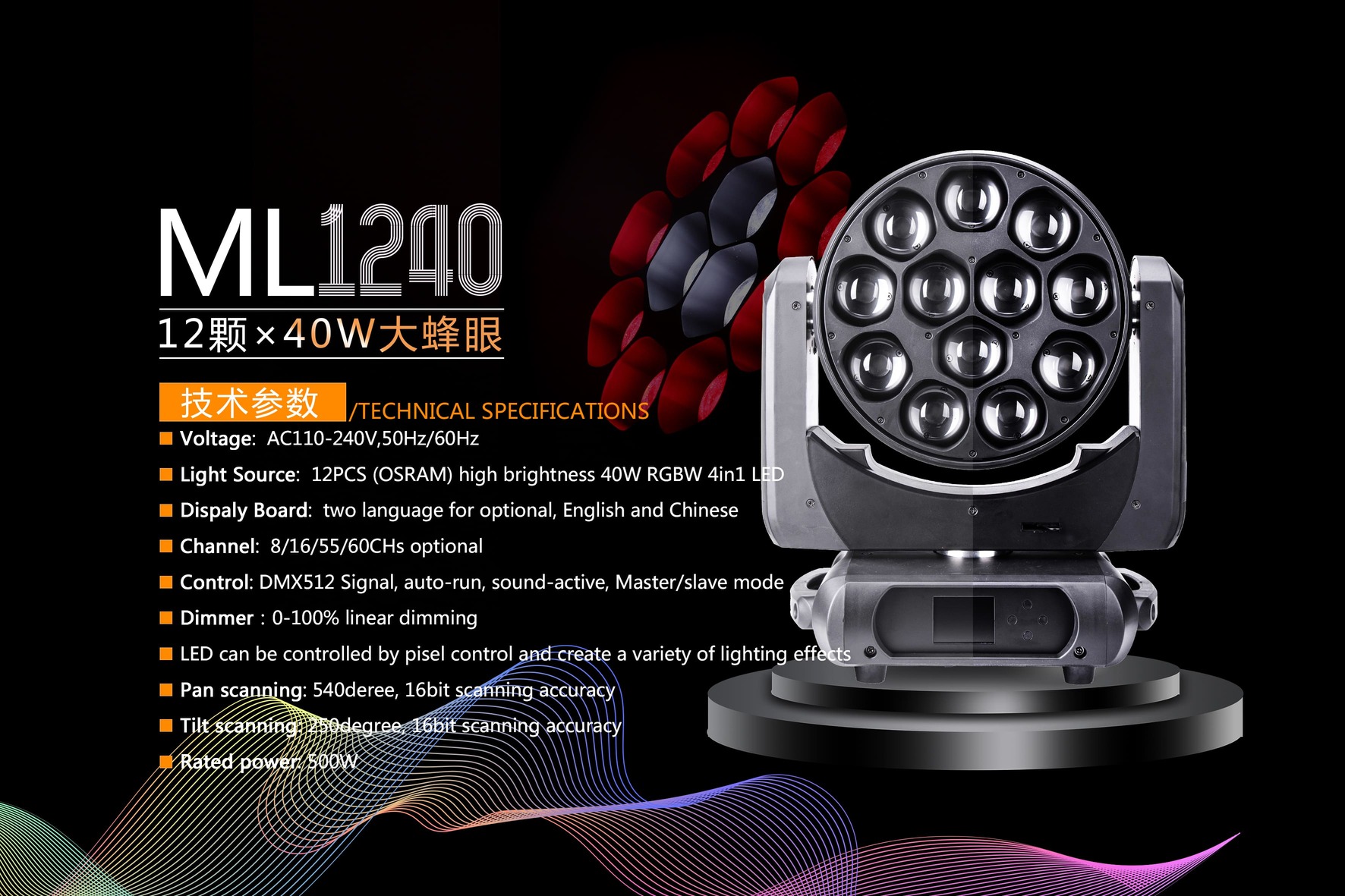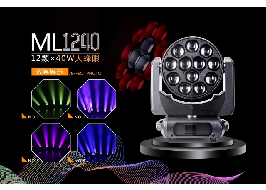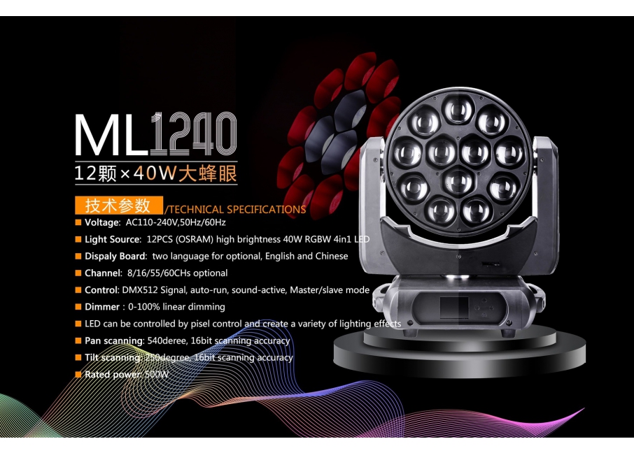 ♦ Light Source: 12x40W(OSRAM RGBW 4in 1/LED)