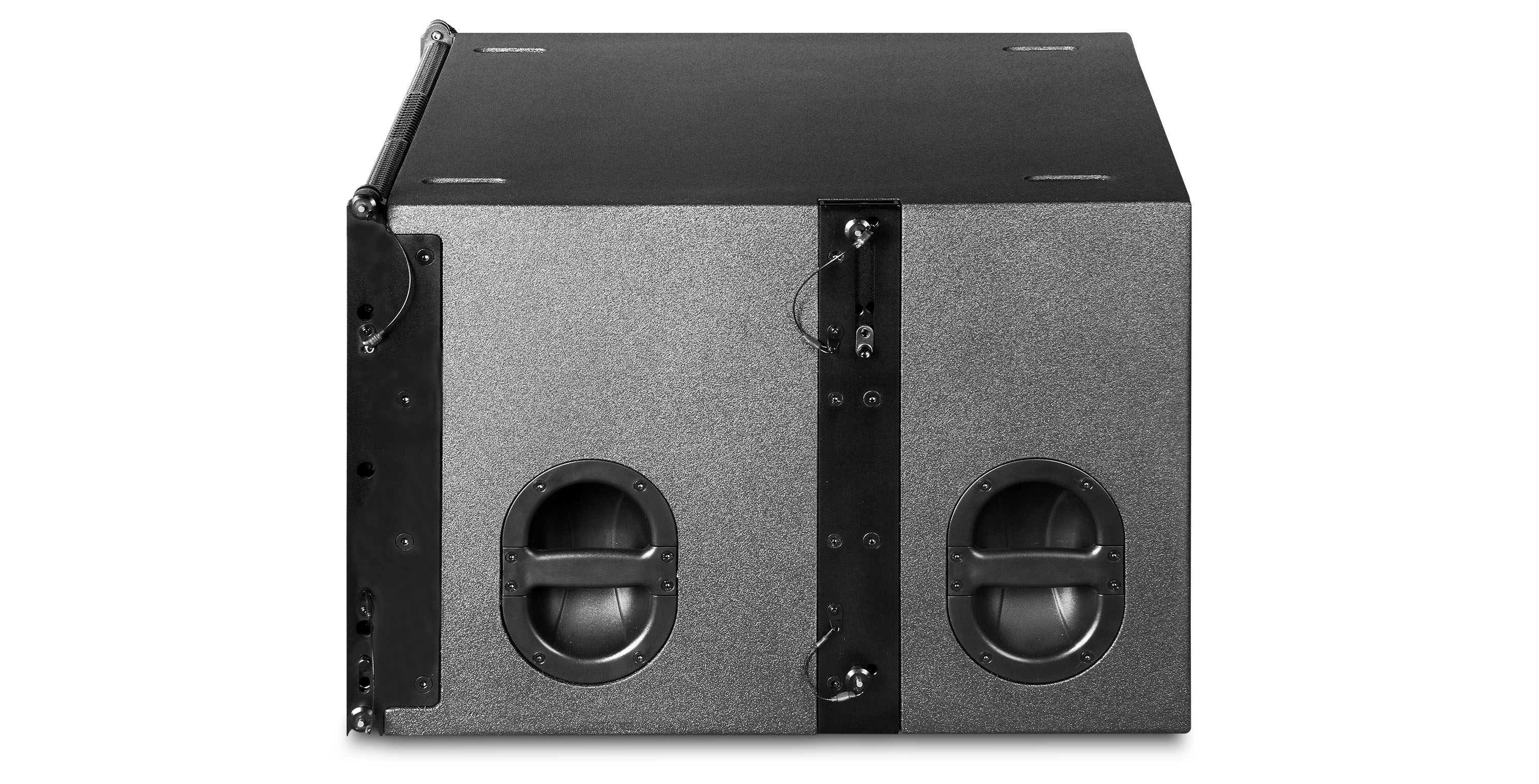 The MLA215B is a dual 15" low frequency enclosure designed for sub-bass reinforcement to MLA210, made of high quality plywood with polyurea waterproof paint. All rigging parts are made of aluminium alloy. The MLA215BA is equipped with BA2.1010 digital amplifier module based on MLA215B to be an active subwoofer.