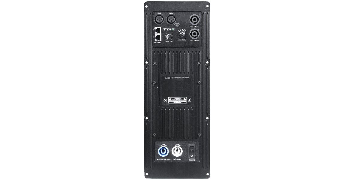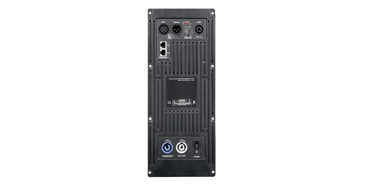 The SA series of active amplifier module, designed for active systems, using Class D circuit, modularized design, independent PWM fixed frequency modulation, to reduce the difference frequency of the self-excited circuit and multichannel interference. Built-in two channel 24 bit / 96 k sampling frequency of the high performance DSP processor, RS485 connector or network adjustment, input 31 section PEQ, output 10 section PEQ, input/output delay 0 to 25 ms is adjustable, and bringing the independent band-pass filter, all-pass filter, independent pressure limit, the noise control. The product has large power and low distortion, and the whole shielding sealing box makes the product meet the requirements of EMC and product safety level.