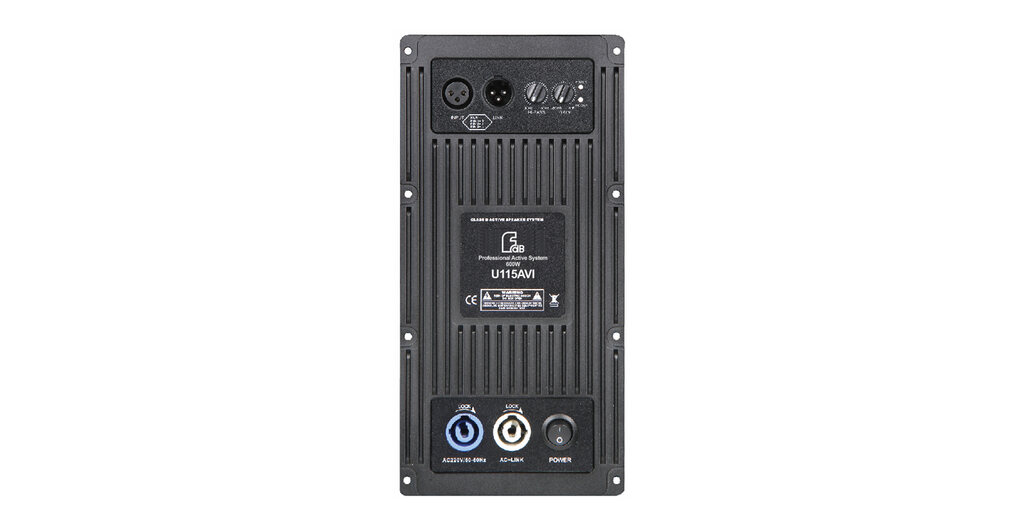 The U115VI is a 15" two way full range speaker with bright and powerful sound. Unit configuration: 1x15" high efficiency mid-bass unit, 1x1.4" exit throat 75mm composite diaphragm HF driver with 90°×40° rotatable horn. The cabinet is made of multilayer composite plywood with wear-resistant polyurea paint. U115AVI is an active speaker with two channels and DSP digital amplfier.