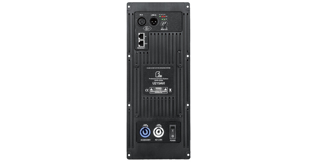 The U215VI is a 15", high power, two way full range speaker with bright and powerful sound. Unit configuration: 1x15" high efficiency mid-bass unit, 1x1.4" exit throat 75mm titanium diaphragm HF driver with 90°×40° rotatable horn. The cabinet is made of multilayer composite plywood with wear-resistant polyurea paint. U215AVI is an active speaker with two channels and DSP digital amplfier.